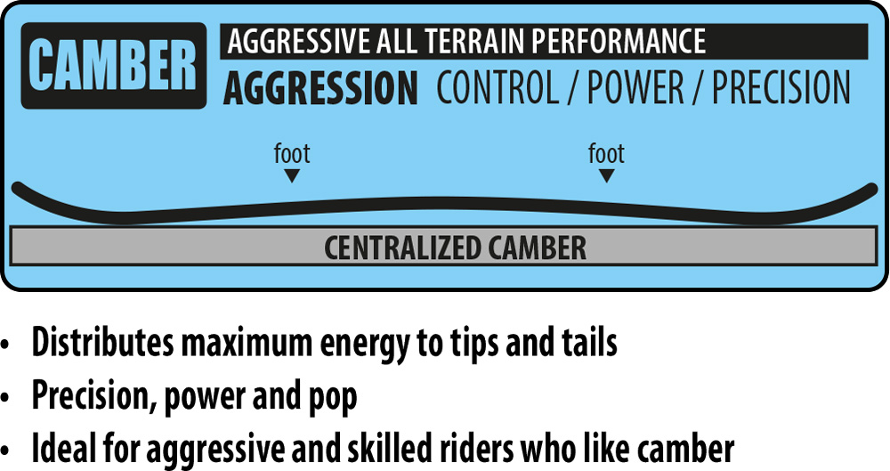 Camber klasyczny profil, dający desce mnóstwo dynamiki a także potężny pop. Jest to bardzo agresywny kształt dla zaawansowanych riderów, którzy oczekują pełnej kontroli i błyskawicznej reakcji deski podczas bardzo szybkiej jazdy.