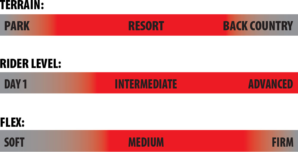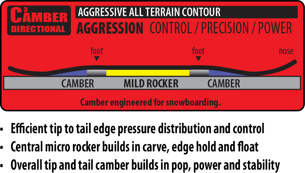 Deska o kształcie directional i agresywnym profilu C3 (camber od Mervin) wraz z Magne Traction® i delikatnym taliowaniem idealnie odnajdzie się w każdych warunkach. Jest to sprzęt dla doświadczonych riderów, którzy potrzebują uniwersalnej deski, świetnie radzącej sobie poza trasą i podczas carvingu. W tym sezonie kształt tail’a i nose’a został lekko zmieniony.