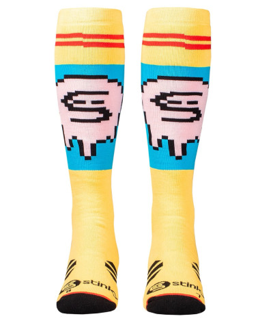 Stinky Skarpety Atari retro pixel art i najwyższy komfort snowboardowy. Oddychające, miękkie i amortyzowane, zapewniają ciepło i wygodę przez cały dzień na stoku.