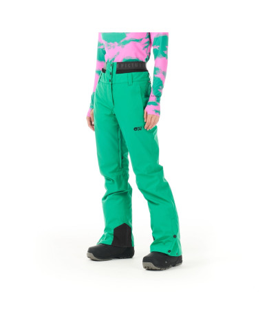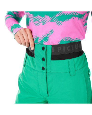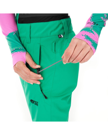 Picture Organic Damskie Spodnie Exa 20/20 Emerald wodoodporne 20K/20K, z elastycznym pasem, ergonomicznym krojem, kieszeniami na udach i hydrofobową powłoką DWR.
